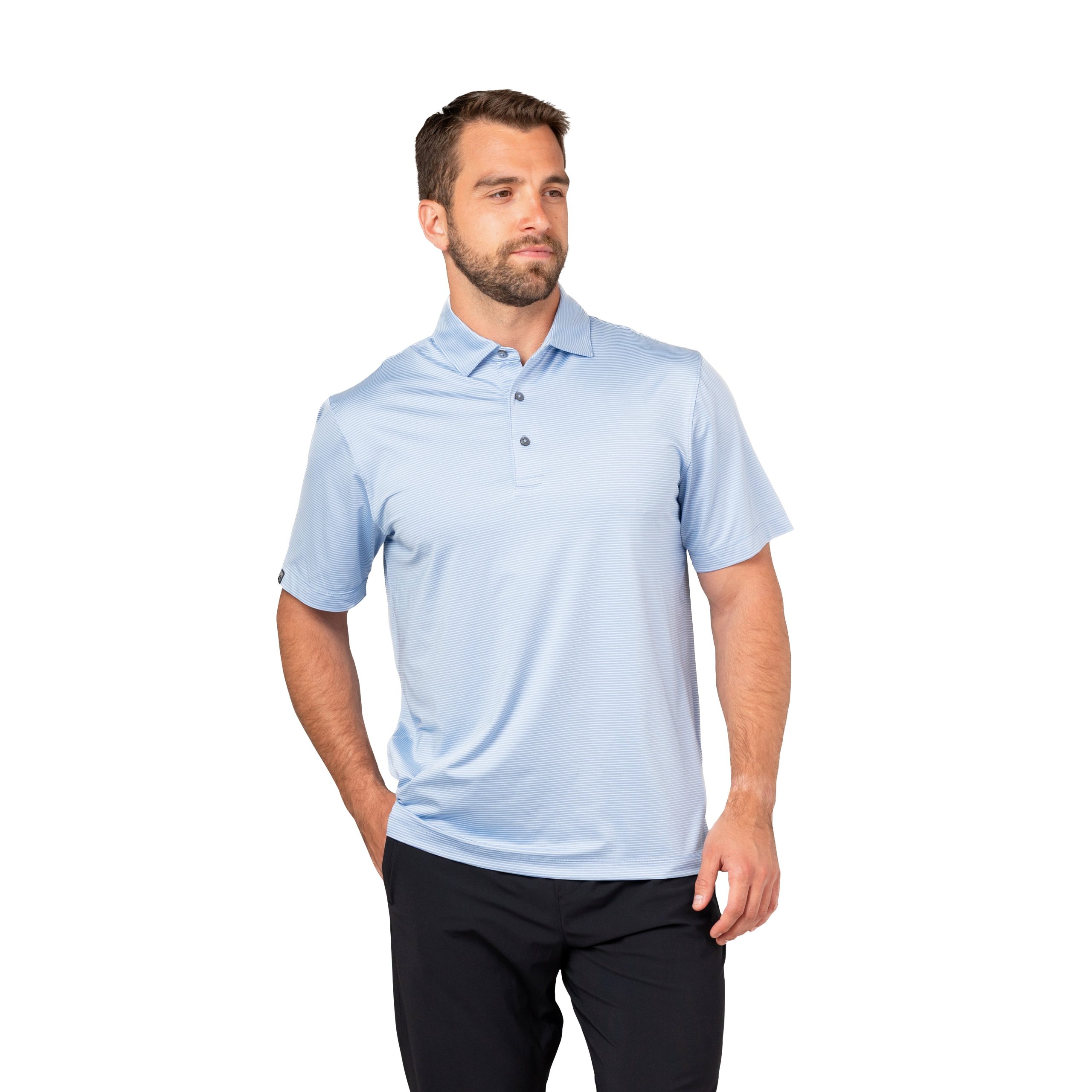 Optimism included with purchase. Thanks to the subtle microstripes, this lightweight, ultra-stretchy, moisture-wicking, wrinkle-resistant polo is just as sleek as it is comfortable.