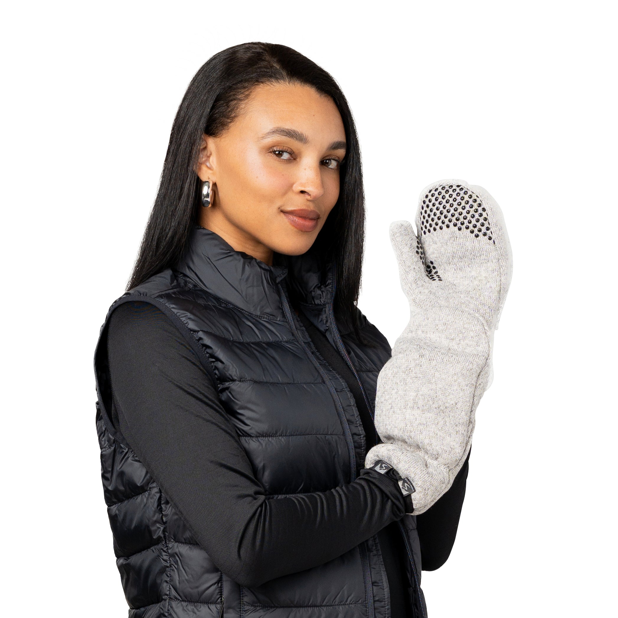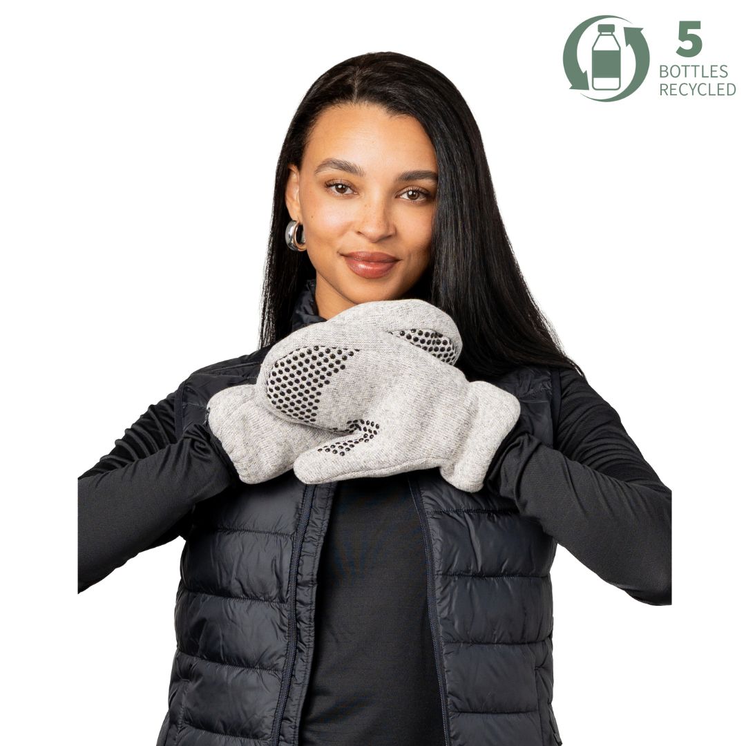 With a sweaterknit outside, plush fleece inside, ribbed cuff, and grippy fingers for better control, these mittens do it all. Plus, they’re made from 5 recycled bottles. Cold hands? Not around here.